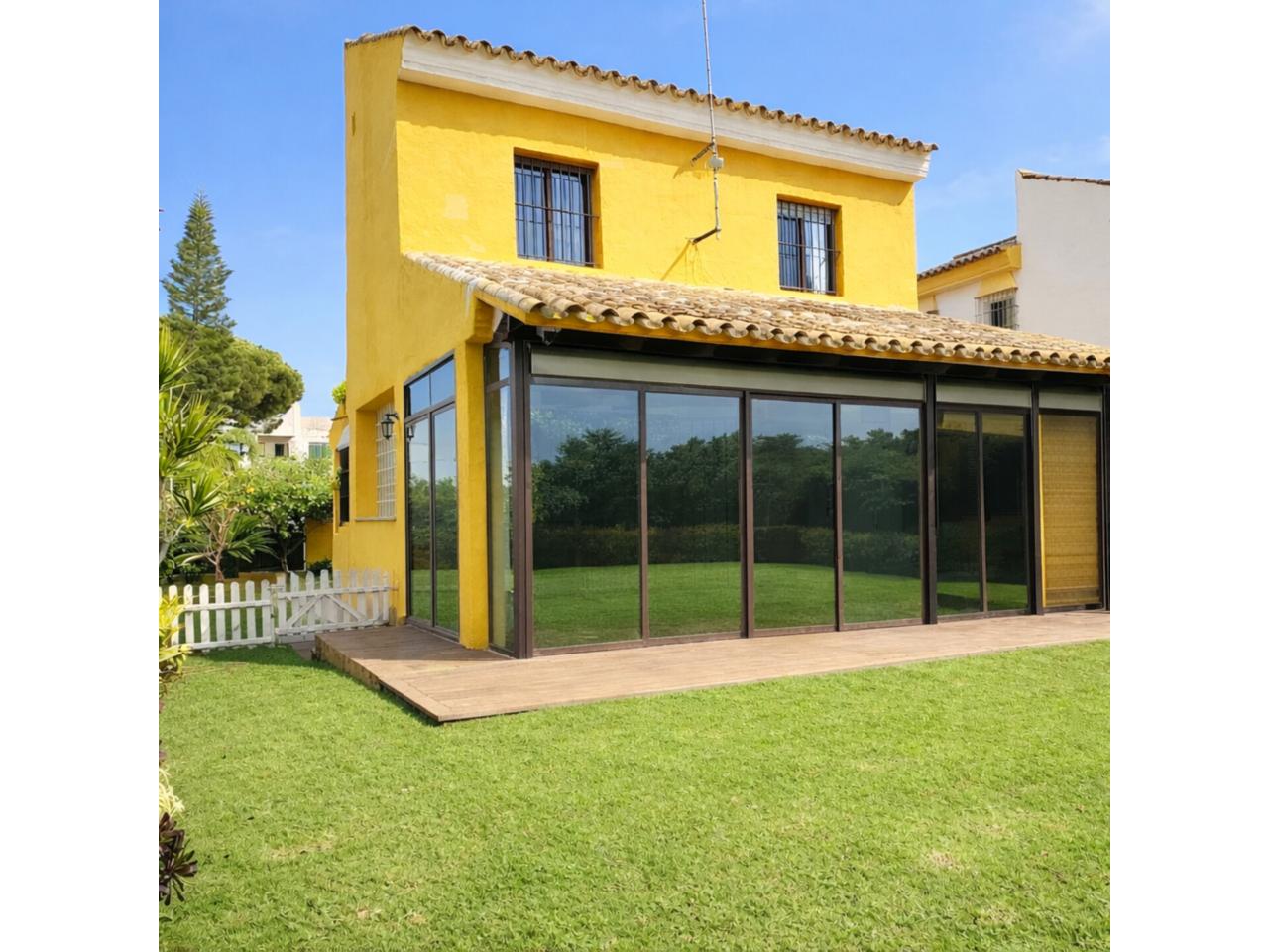 Chalet independiente de 200 m², útil 180 m², 300 m² solar, 4 habitaciones (4 dobles), 3 baños completos y 1 aseo, cocina (amueblada con electrodomésticos), lavadero (con patio de ropas), trastero, garaje privado, comedor (amplio salón-comedor), terraza (con porche cubierto y acristalado), suelos de mármol, armarios empotrados, carpintería interior madera lacada en blanco, en planta baja hay un dormitorio doble con vestidor y baño completo, gran jardín con posibilidad de hacer piscina, Estado certificación: En trámite. CERCA DE LA PLAYA !!! …….VISITALO